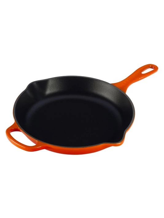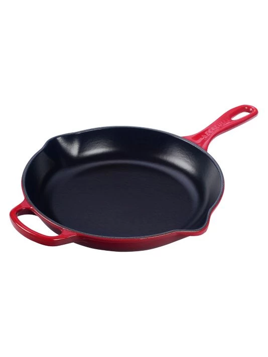 A versatile cooking staple with a dash of color, this stylish skillet has vitreous porcelain finish and sloped sides that prevents drips.