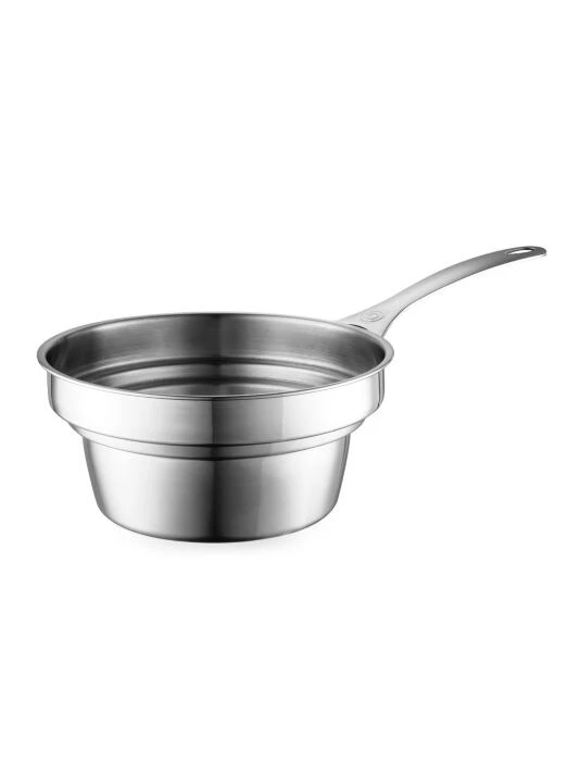 Radiant and durable, the triple-layer construction of this double boiler features a base-to-rim aluminum core for superior heat distribution, while the lightweight titanium-infused stainless steel exterior resists scorching and corrosion. Innovative details such as interior capacity markings, an iconic three-ring lid with built-in steam vents, and a dripless pouring rim save valuable prep time and make cleanup a breeze.