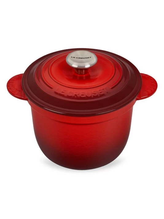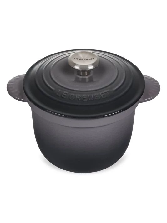 Designed with a stainless steel knob safe at any oven temperature, Le Creuset’s cast-iron rice pot sports curved sides, and a precision lid equipped with steam vents to prevent overboils, promote convection, and moisture circulation for evenly cooked grains.