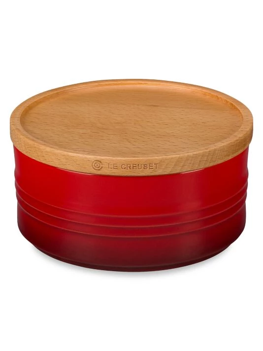 Featuring an air-tight silicone gasket seal and dense stoneware ideal for temperature regulation, this canister is accented with a triple-ring design for a contemporary finish.