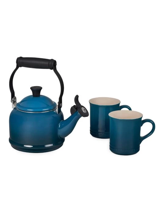 Bold and sophisticated kettle set complete matching mugs for a put-together look. Showcasing Le Creusets famous high-quality and charm.