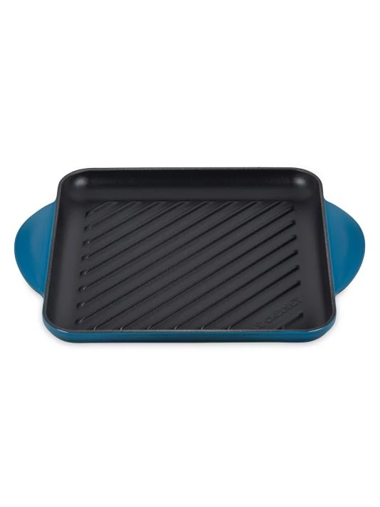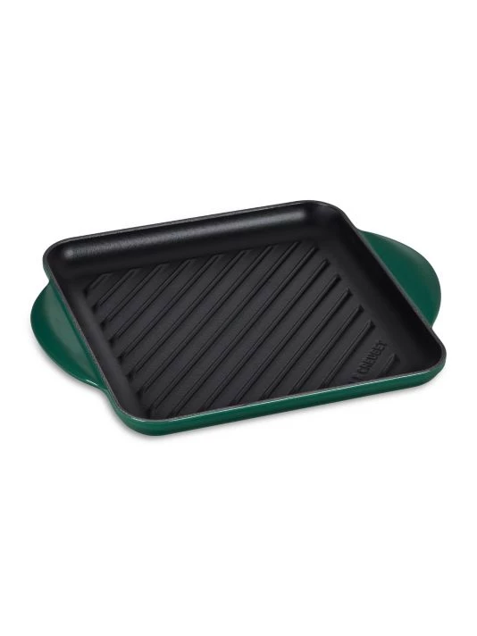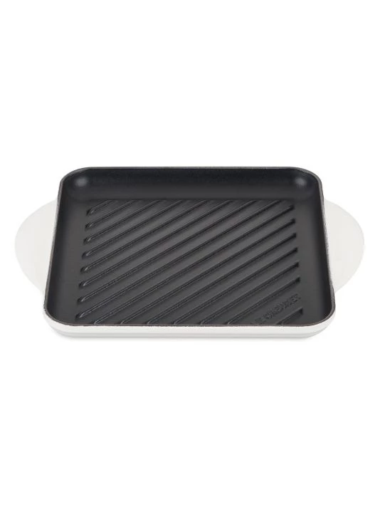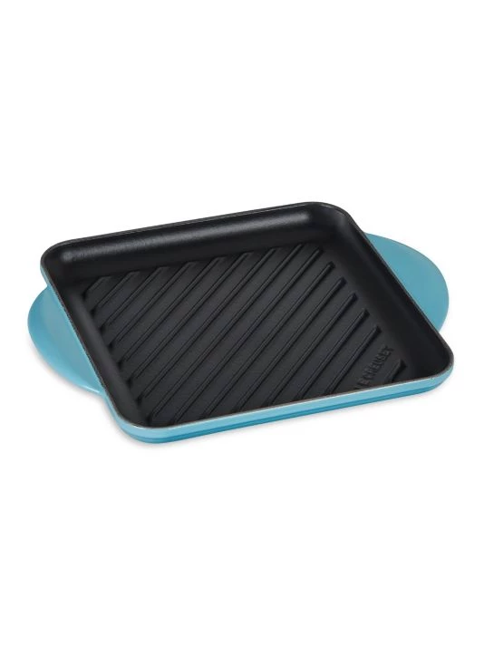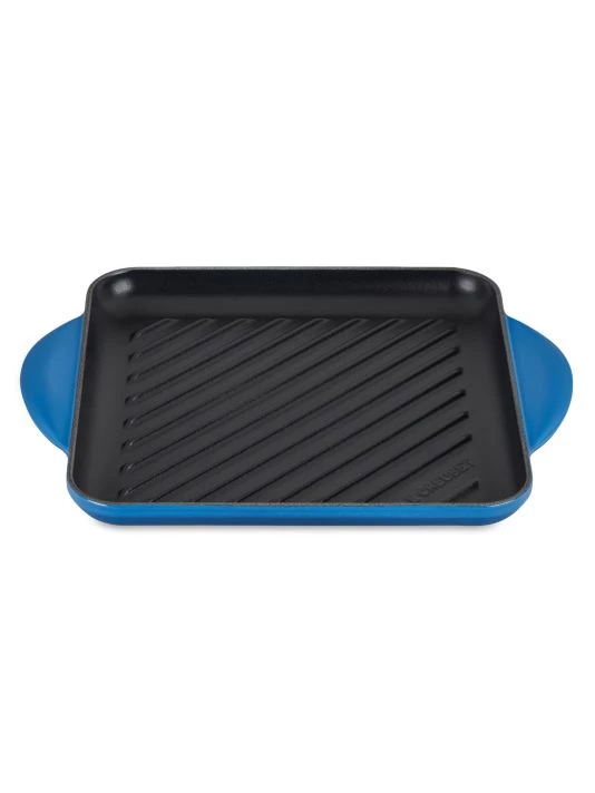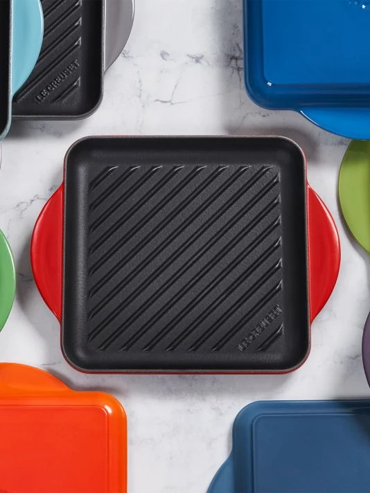 From savory vegetables to mouthwatering steak, chicken, and shrimp, the square grill pan gives all the delicious flavor of an outdoor grill, then presents foods beautifully at the table. The square grill pan’s interior is coated with Le Creuset’s protective satin black finish to prevent damage and wear. Over time, this slightly abrasive interior develops a natural patina that is ideal for searing and frying.