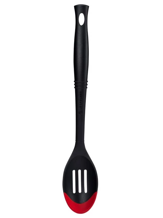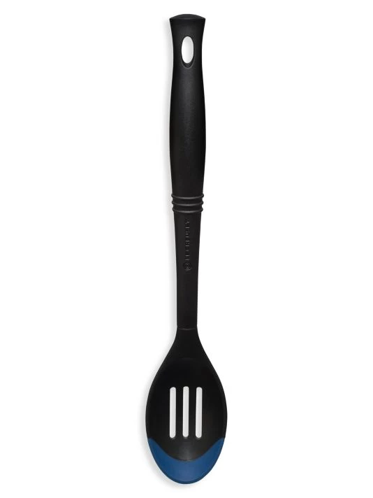 This slotted spoon’s dual-material construction offers flexibility without sacrificing strength. Its elliptical-shape handle with grip rings increases comfort and control.