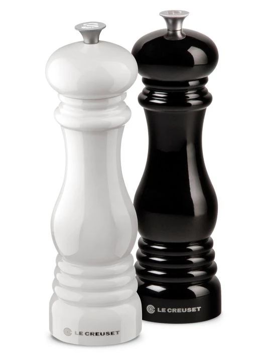 This set of salt and pepper shakers features an Abs plastic finish that is resistant to moisture, grease and odors. Adjust the grind setting with a turn of the knob, clockwise for a finer ground and counterclockwise for a coarser grind.
