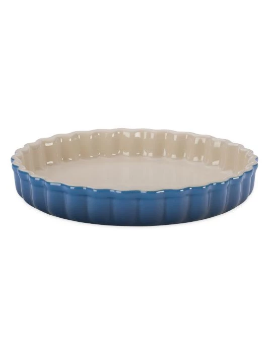 The stoneware construction of the tart dish is well-suited to baking and outperforms materials like aluminum to provide steadier, more even heat. Its curving sidewall adds a touch of character to finished pastries while also serving the functional role of helping crusts bake perfectly. 10-year warranty.