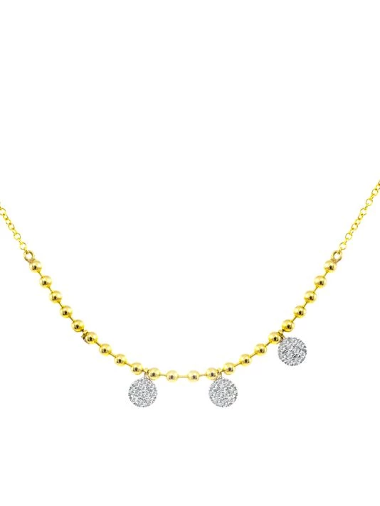 Diamond pavé discs suspend from this gold ball chain station necklace.
