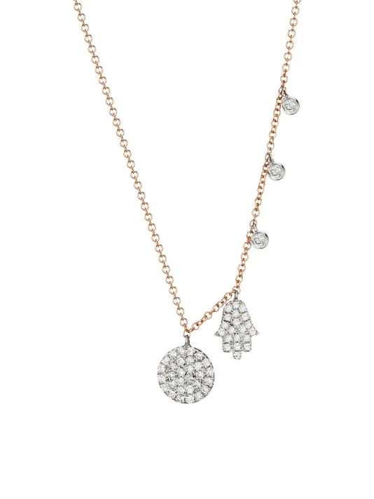 Decadent rose gold necklace with diamond-embellished charms exude elegance.