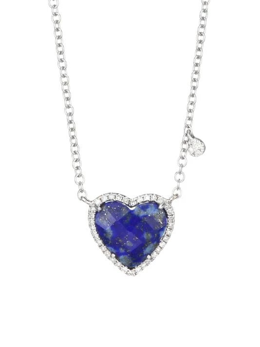 Shaped into a heart, this lapis lazuli pendant necklace flaunts delicate diamonds.