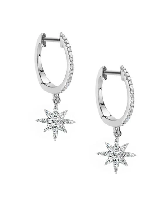 Diamonds add glittering shine to these celestial huggie hoop earrings.