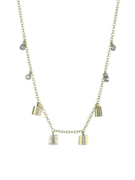 Geometric charms flaunt a pavé diamond finish.