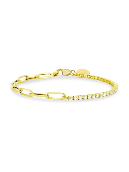 Made of 14K yellow gold, this eye-catching bracelet is composed of paperclip links and white-diamond-embellished tennis links.