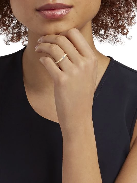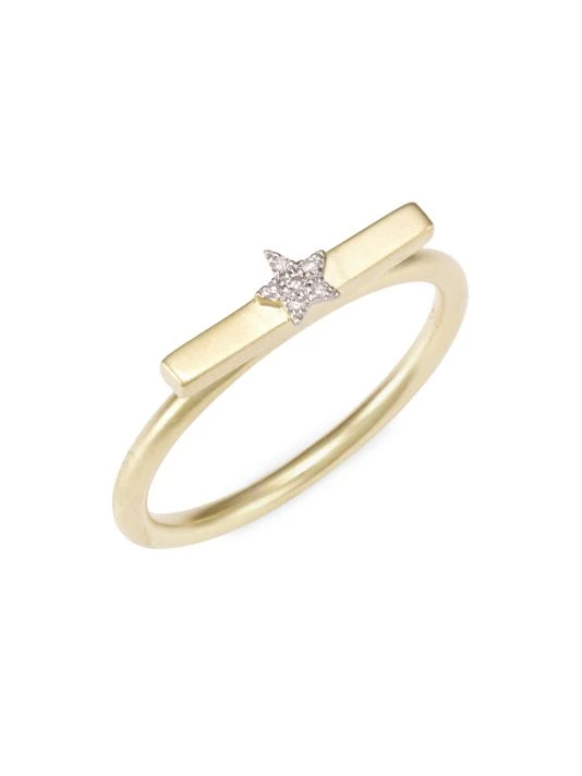 A delicate gold ring with top bar detail is highlighted with diamond-encrusted star set in white gold.