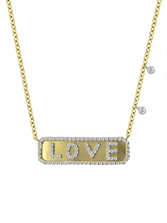 Embrace romance with this bar pendant necklace with LOVE framed and encrusted with diamonds.