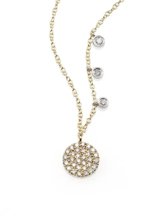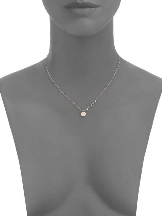 A pavé diamond disc is joined by three delicate diamond charms on a graceful gold chain.