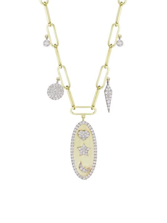 Diamond-embellished moon and star charms adorn this chain neckalce.